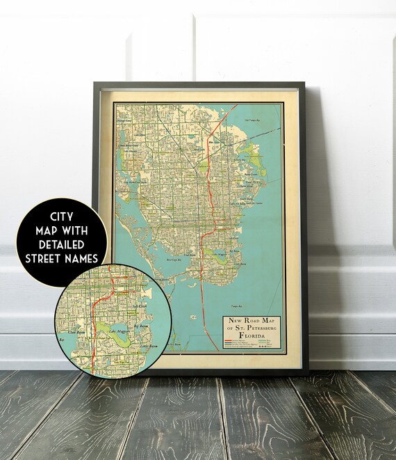 Vintage Retro Design Map of St Petersburg, Florida Vintage Looking